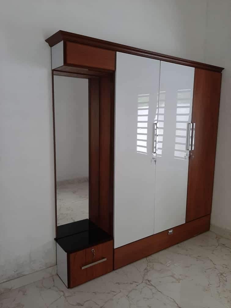 Sliding Doors: Excellent for space-saving, as they don’t require clearance to open, making them perfect for smaller rooms. They are a popular choice in many contemporary wardrobe designs in Trivandrum. Hinged Doors: Offer full access to the entire wardrobe at once. Consider mirrored doors to enhance the sense of space and provide a functional dressing area.
